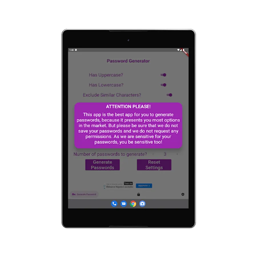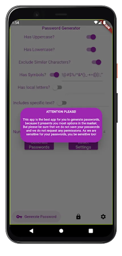 Please remember that APP ONLY CREATES OR CHECKS PASSWORDS FOR YOU. APP DOES NOT KEEP YOUR PASSWORDS!!!