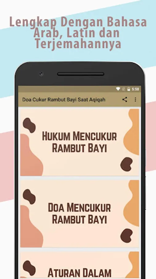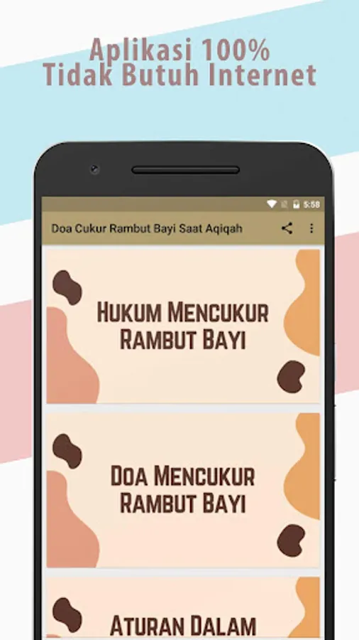 This application is completely offline and does not need an internet connection at all to use it. Made with an attractive design, but still simple and easy to use. Download it for free, and learn how to read and pray baby hair shaving through your smartphone.