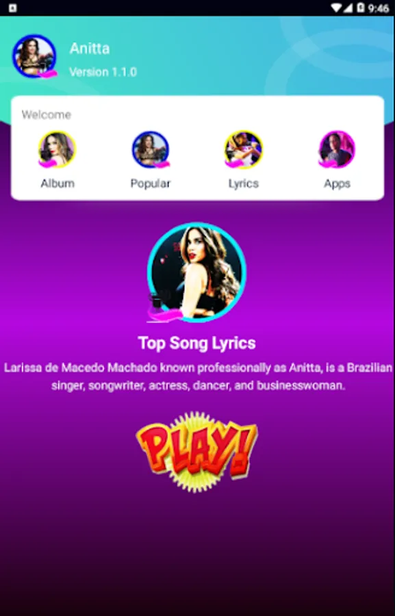 This application will simplify the search for all the songs and lyrics of your favorite singer Anitta. Here we offer all the best and most popular albums today.