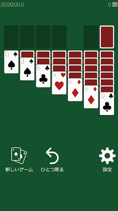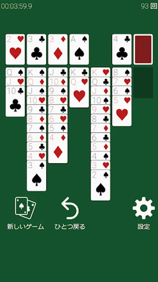 5. The game is cleared when all the cards in the top four empty rows are placed in order from A to K. (If all the rows are open, the game is automatically opened. (If all are open, the puzzle can be completed automatically.)