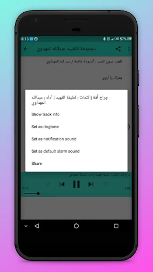 . You can also download nasheed audio on your cellphone by clicking and holding briefly on the audio you want, then selecting "Set As Ringtones"