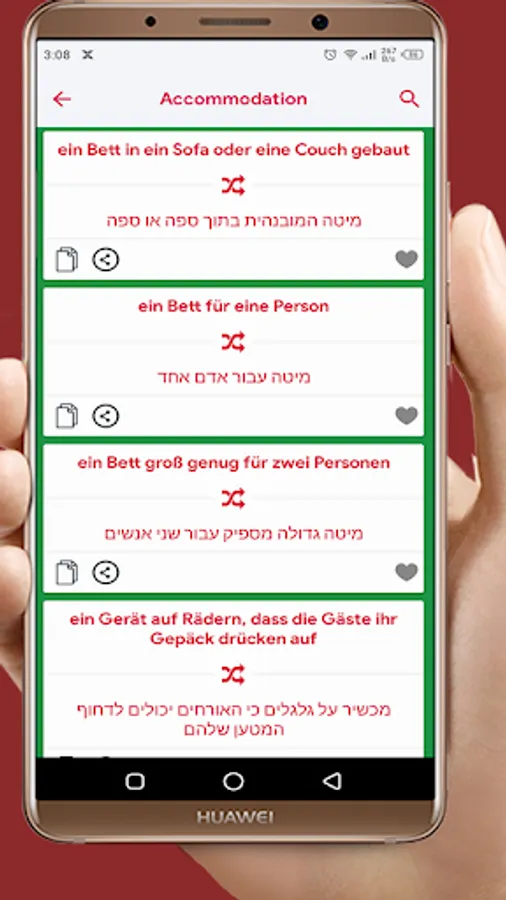 It's FREE learning app from German to Hebrew and Hebrew to German. You can even learn difficult words and sentences in a few seconds. This app is helpful for tourists and travelers to learn the basics of the foreign language. Best app to learn Hebrew and its easiest and best way to learn Hebrew alphabets and grammar for beginners. It is also helpful to learn verbs and pronunciation. It works efficiently in online and offline modes.