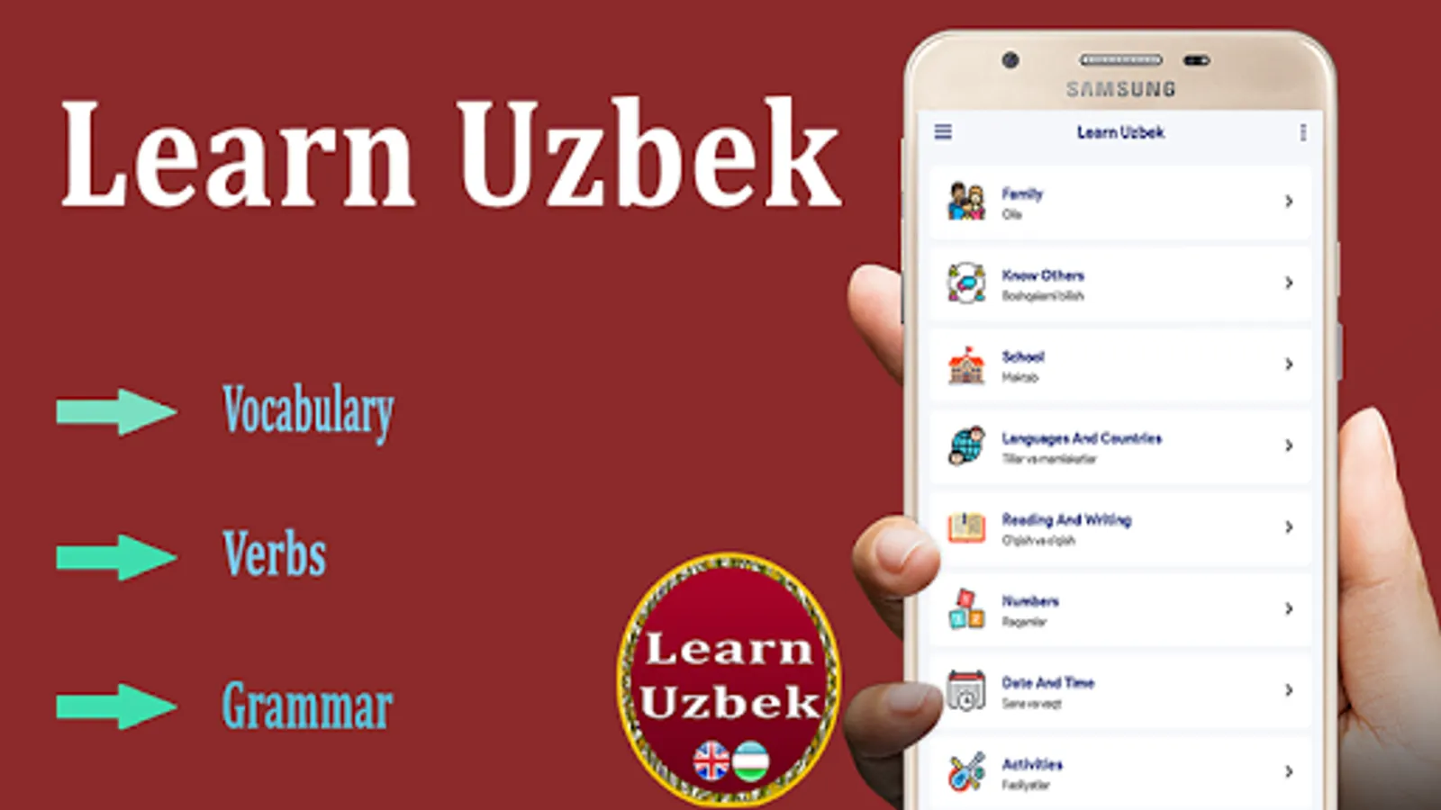 It's FREE Learn app from English to Uzbek and Uzbek to English. You can even learn difficult words and sentences in a few seconds. This app is helpful for tourists and travelers to learn the basics of the foreign language. Best app to learn Uzbek language and its easiest and best way to learn Uzbek alphabets and grammar for beginners. It is also helpful for learning verbs and pronunciation. It works efficiently in both online and offline mode.