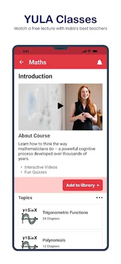 Education app with personalized learning through Video lessons, Live classes and Exercises.