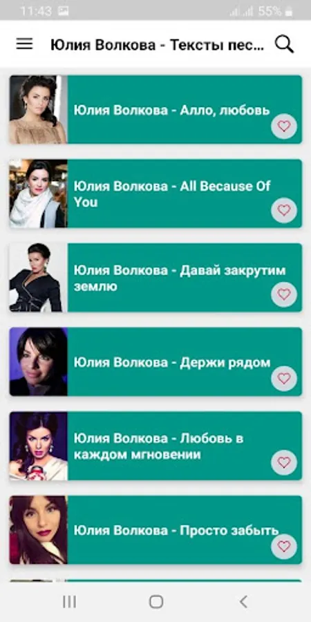 Юлия Волкова - Тексты песен Screenshots