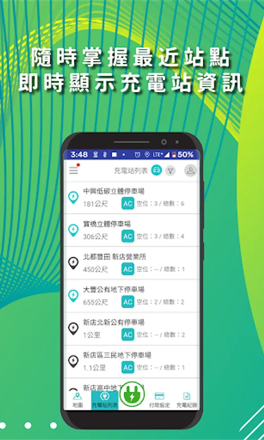 提供精準即時動態、槍頭類型、入口、時間、費率等,讓車主快速搜尋適合的站點。