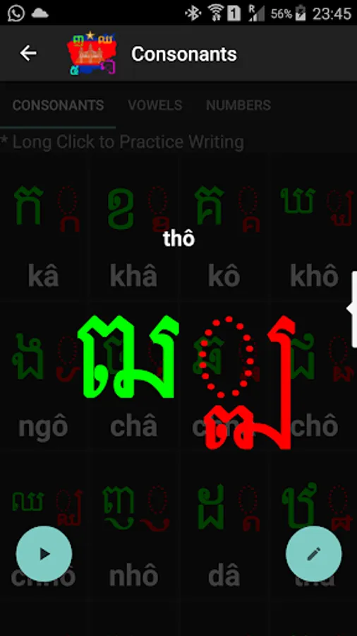 Use automatic mode for quicker, easier and funner study of the Khmer script and enjoy this amazing language !!!