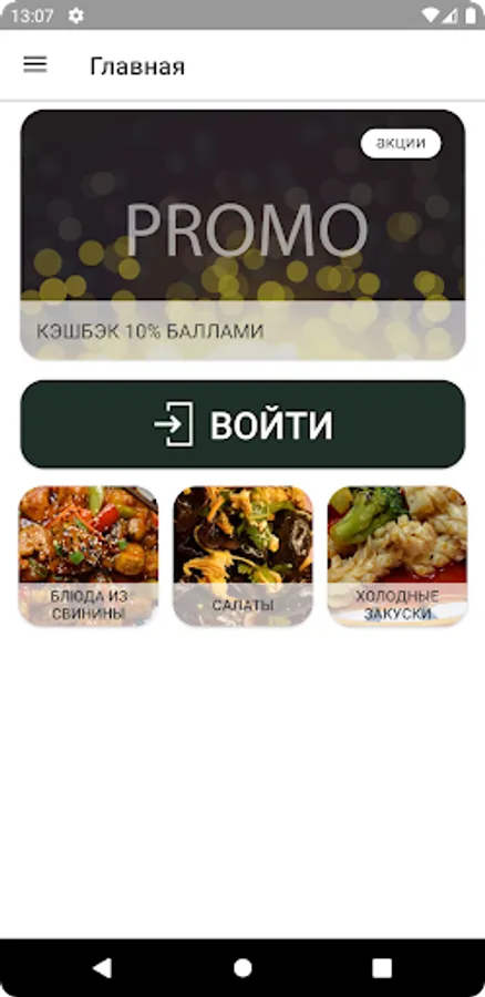 Приложение дает возможность оплачивать балами, сохраняет историю заказа.
