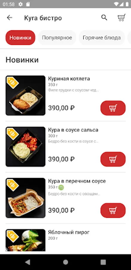 - узнавайте самую свежую информацию о новинках меню и акция прямо в приложении.