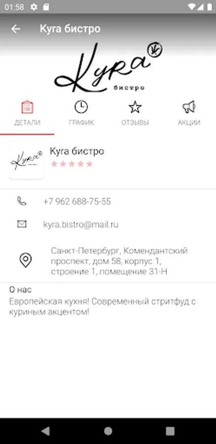 Привет, это Kyra! Я создаю современный формат заведений, вдохновленный европейскими бистро. Актуальное сочетание здорового питания и популярного стритфуд движения. У нас есть приложение, а у приложения есть простая задача делать нашу куру еще ближе к Вам.