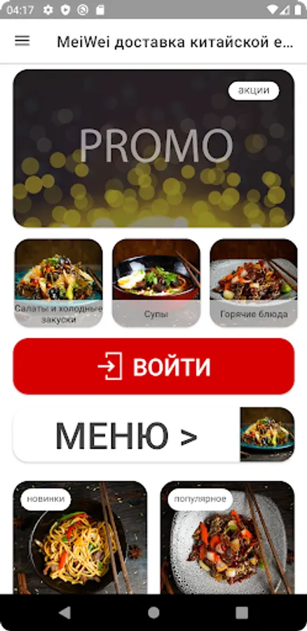 Мы готовим то, что Вы любите, и то, что нужно есть, ведь китайские блюда отличаются не только отменным вкусом, но и большим количеством полезных веществ в ингредиентах. Получайте настоящее удовольствие – выбирайте мобильное приложение MeiWei.