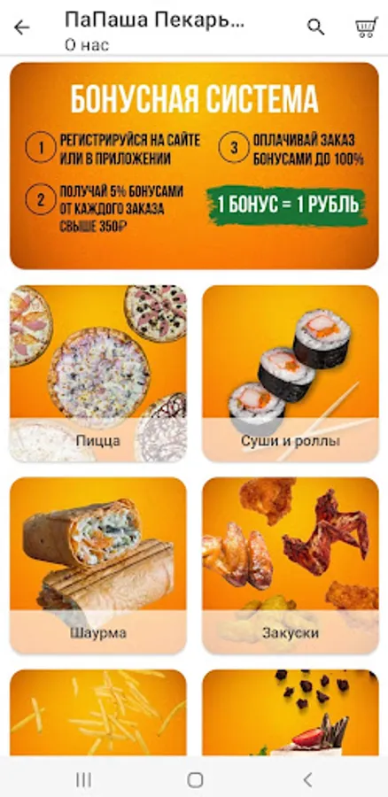 Доставка пиццы, роллов, шаурмы, закусок и десертов. Для вас: - разнообразное удобное меню - доставка заказов "до двери" в течение часа - гибкая система оплаты: картой, наличными, онлайн - выгодная бонусная программа - акции и спецпредложения