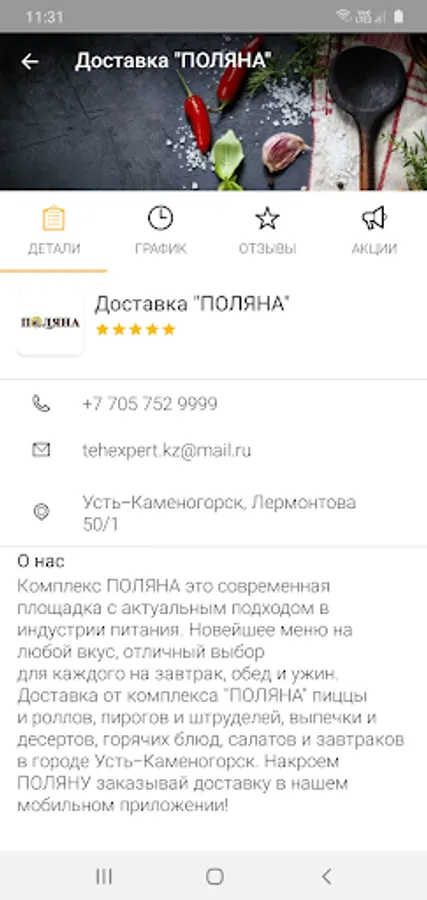 Комплекс ПОЛЯНА это современная площадка с актуальным подходом в индустрии питания. Новейшее меню на любой вкус, отличный выбор для каждого на завтрак, обед и ужин. Доставка от комплекса ПОЛЯНА пиццы и роллов, пирогов и штруделей, выпечки и десертов, горячих блюд, салатов и завтраков в городе Усть-Каменогорск. Накроем ПОЛЯНУ: заказывай доставку в мобильном приложении!