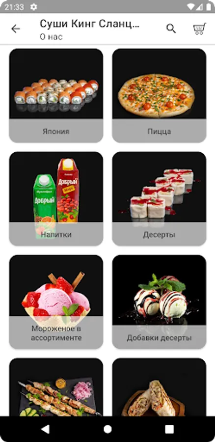Японская кухня, Итальянская пицца, блюда на углях, десерты, напитки, закуски, шаверма, горячие блюда, огромный выбор блюд.