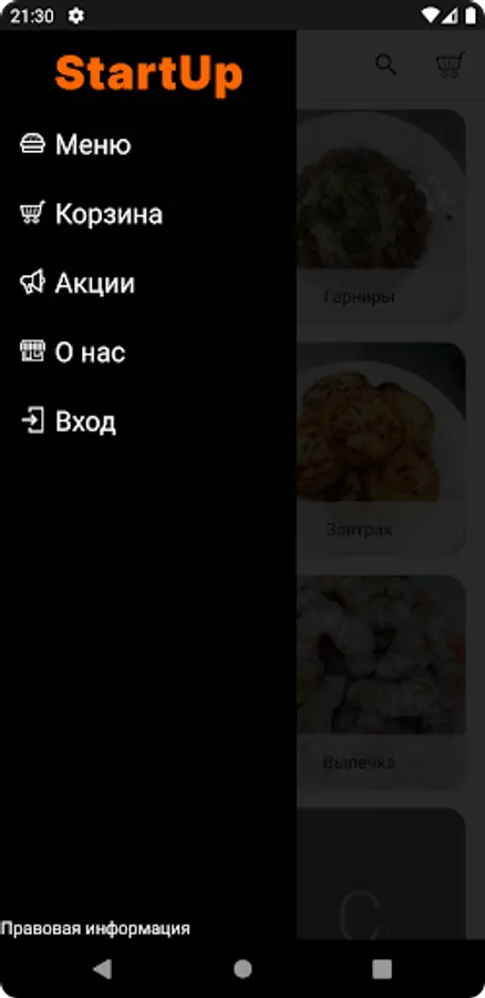 "Кафе StartUp предлагает для гостей, завтраки и обеды по будним дням с 9:00 до 17:00. Корпоративное питание.