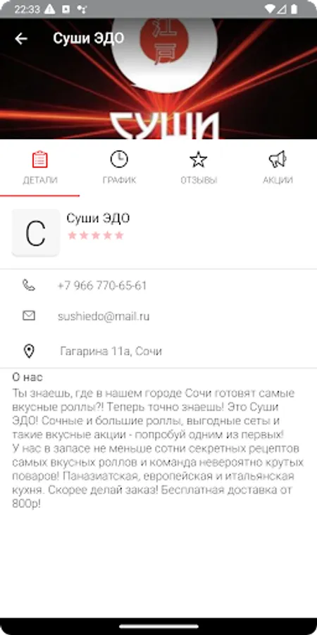 "Ты знаешь, где в нашем городе Сочи готовят самые вкусные роллы?! Теперь точно знаешь! Это Суши ЭДО! Сочные и большие роллы, выгодные cеты и такие вкусные акции - попробуй одним из первых!