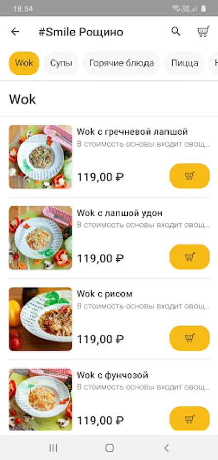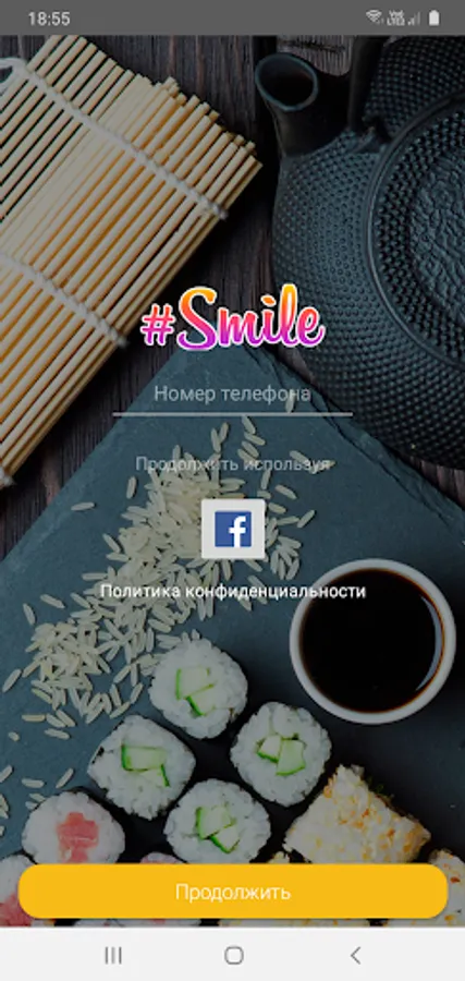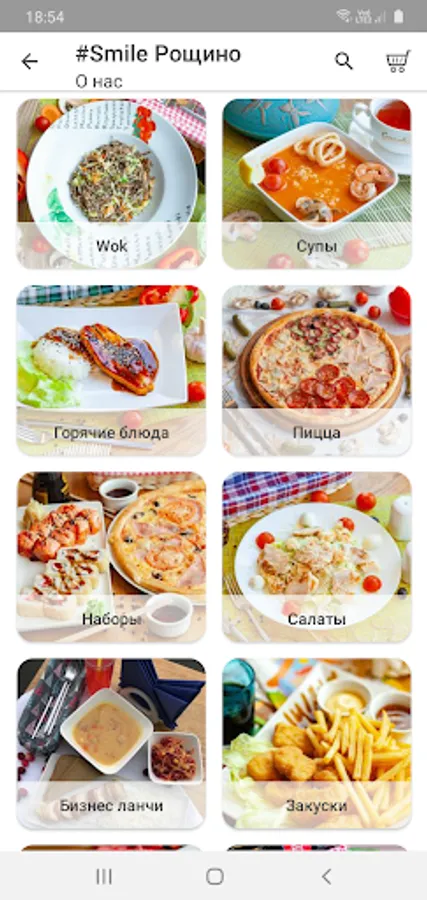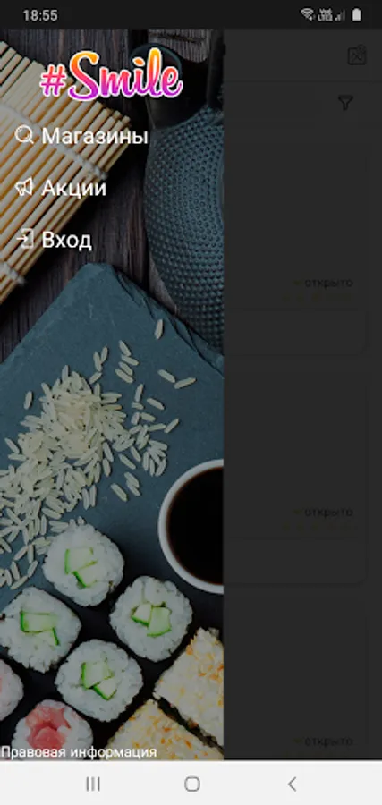 Как сделать заказ в приложении “Суши Смайл”: выберите понравившиеся позиции из меню, добавьте их в корзину и перейдите на экран оформления заказа (по нажатию на иконку корзины).