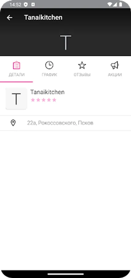 В мобильном приложении кафе Tanai kitchen: