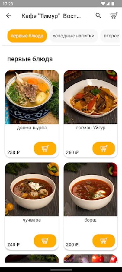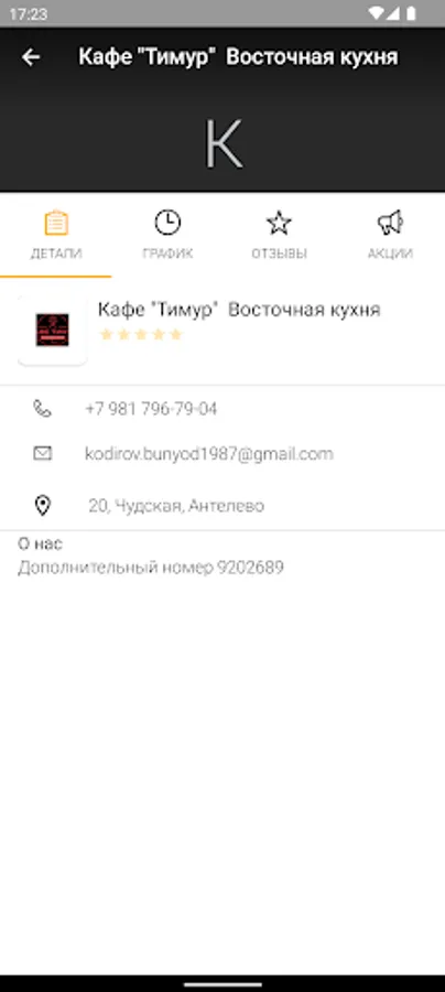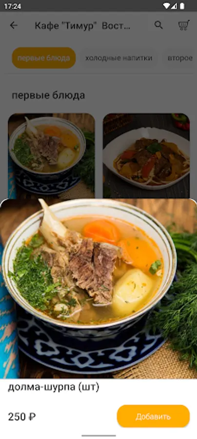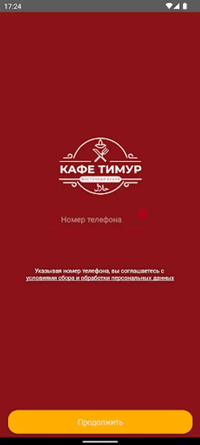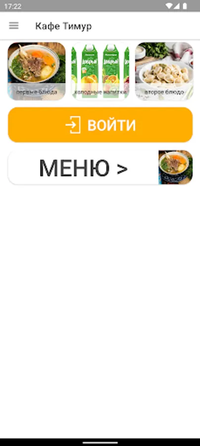В мобильном приложении кафе “Тимур”: