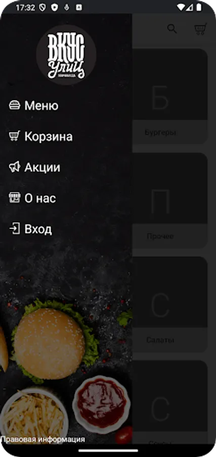 В приложении ВКУС УЛИЦ Стрит-фуд реализована концепция уличной кухни («street food»). Меню составляют избранные блюда со всего света: шаурма (шаверма), гирос, панини, бургеры, хот-доги, удоны и другая вкуснятина.