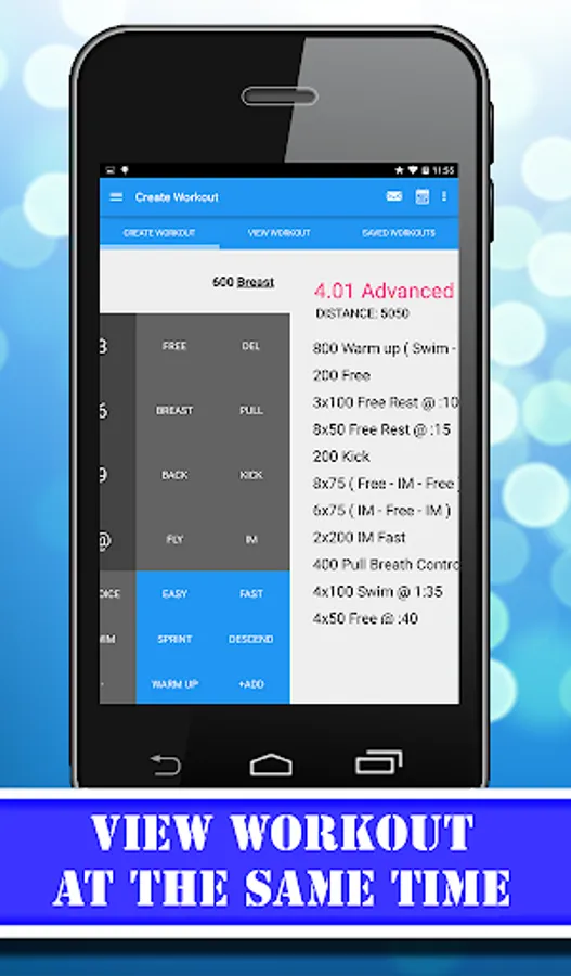 *Click on current set [CREATE WORKOUT] to edit with a keyboard SWIM CALCULATOR