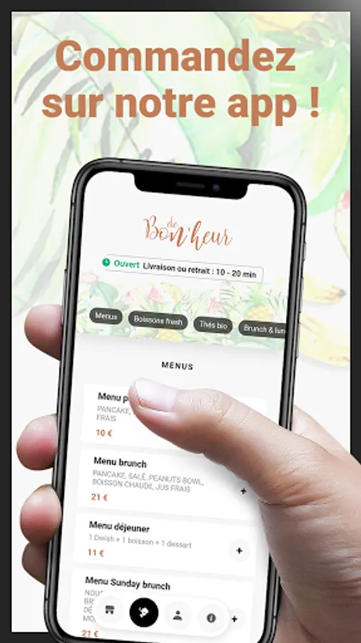 De Bon’heur is a concept store and a "fresh canteen" which offers 100% plant-based cuisine: breakfast, brunch, lunch; an offer that changes regularly, according to the seasons and desires, favoring seasonal products and fruits and vegetables from the region when possible.