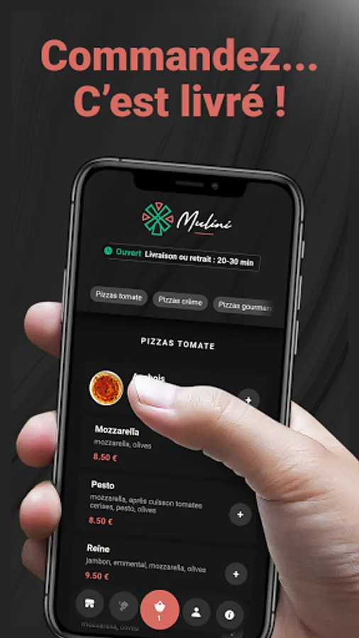 Order delicious pizzas at Mulini on your smartphone! In delivery or to take away, the choice is yours.