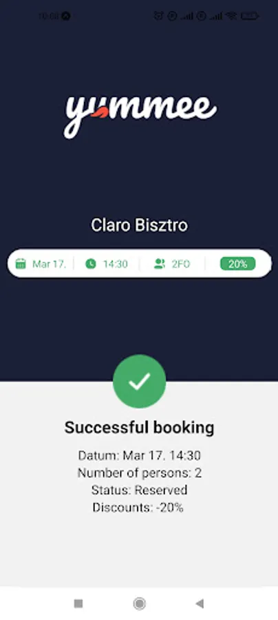 Yummee is a table reservation app, where user can make reservations to restaurants. The restaurants can offer discounts through the app, so the user can earn discounts from the bill if the reservation was made through the app.