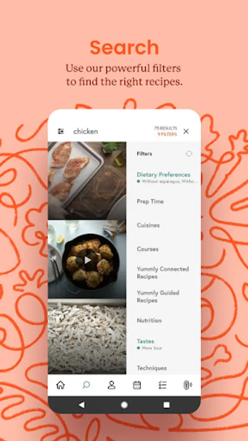 Let Yummly do the heavy lifting for you! Our unique filters allow you to narrow your search by cooking time, course, cuisine, occasion, diet, allergy, nutrition, and more, so finding the perfect recipe is a snap!