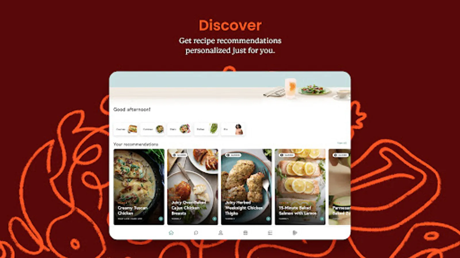 Simplify mealtime with a mouth-watering selection of easy-to-follow recipes picked just for you, table-ready in 30 minutes or less. Shopping lists are created automatically, with optional grocery delivery to your door in available markets. Schedule meals on your integrated calendar and set cooking reminders so your plan is easy to stick to!