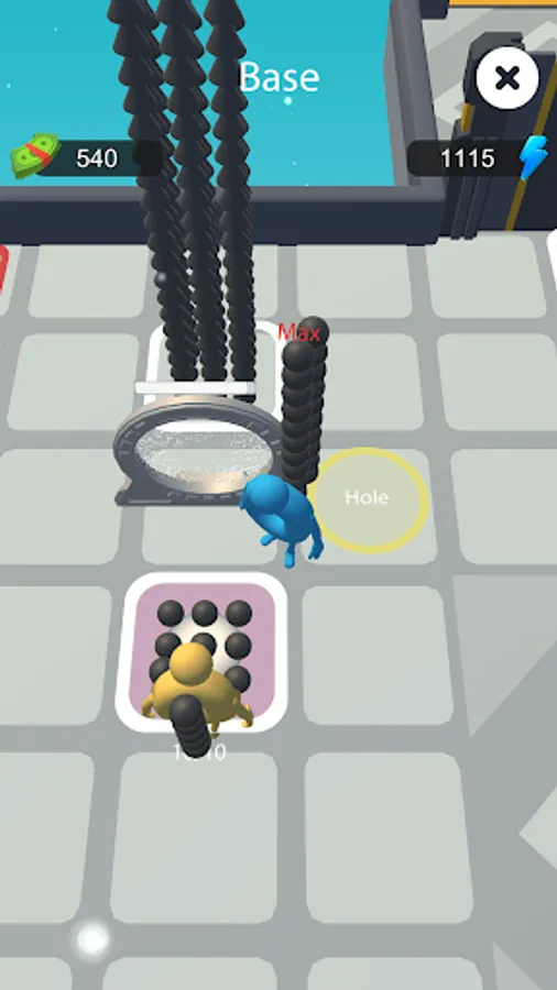 With the Hole, you collect objects to gain energy. You use this energy at the base to produce new objects. You can either upgrade these objects into better ones or sell them. With the money you earn, you can open new production areas or upgrade existing ones.