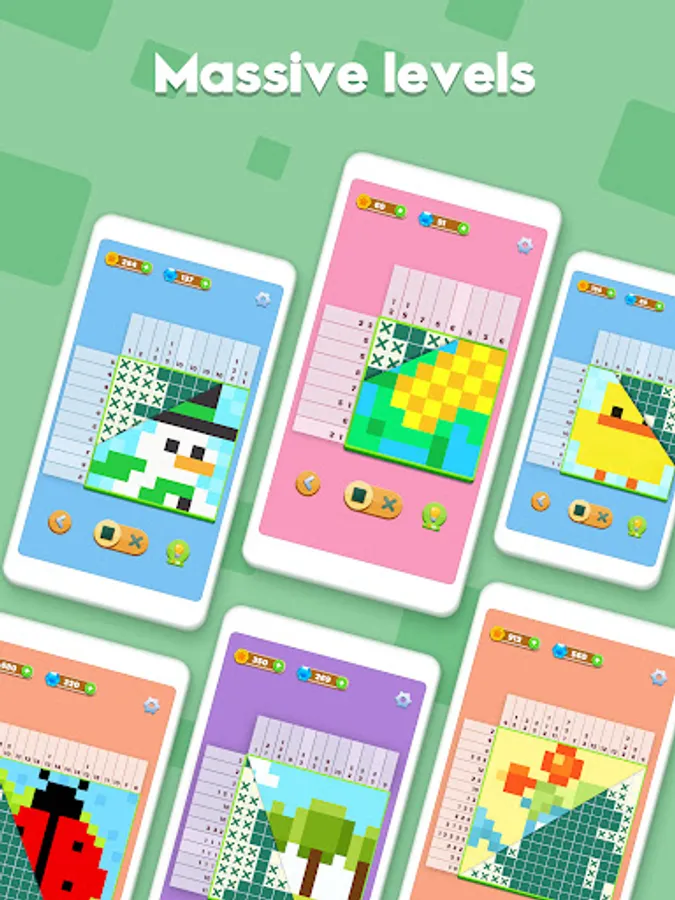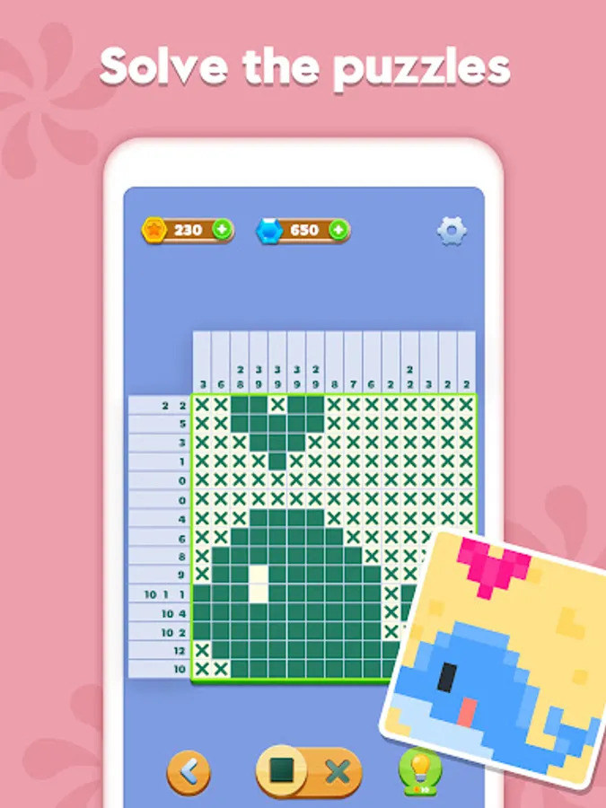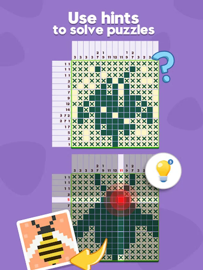 🔮Nonogram is a popular brain relaxing game to solve logic number puzzles by matching blank cells and numbers at the side of the grid to reveal the hidden pixel picture, as known as Hanjie, Picross, Griddlers, Japanese Crosswords, Paint by Numbers, Pic-a-Pix 🔢. A pleasant game to train and exercise your brain, also keep your mind active with the basic rules and logic behind the picture cross puzzle🍭.