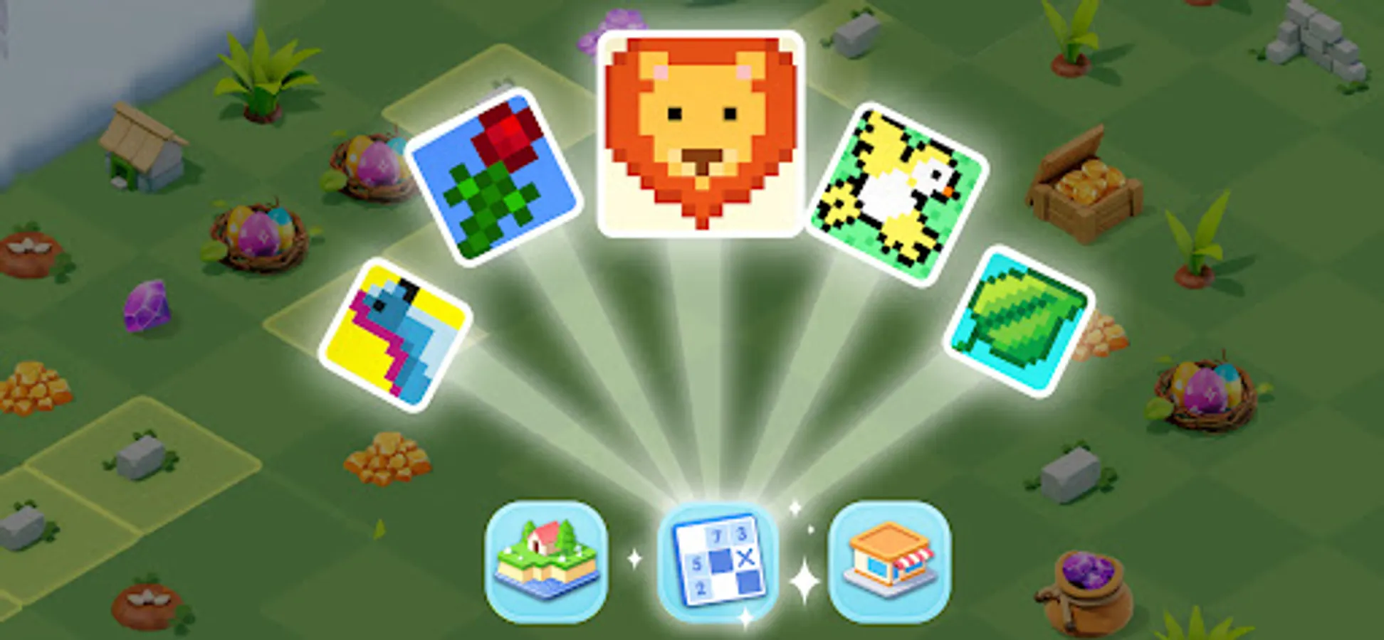 Welcome to magical island and meet elves. Complete nonogram to open gift box with basic material in it and merge them to build your fun fairy tale world🔮!