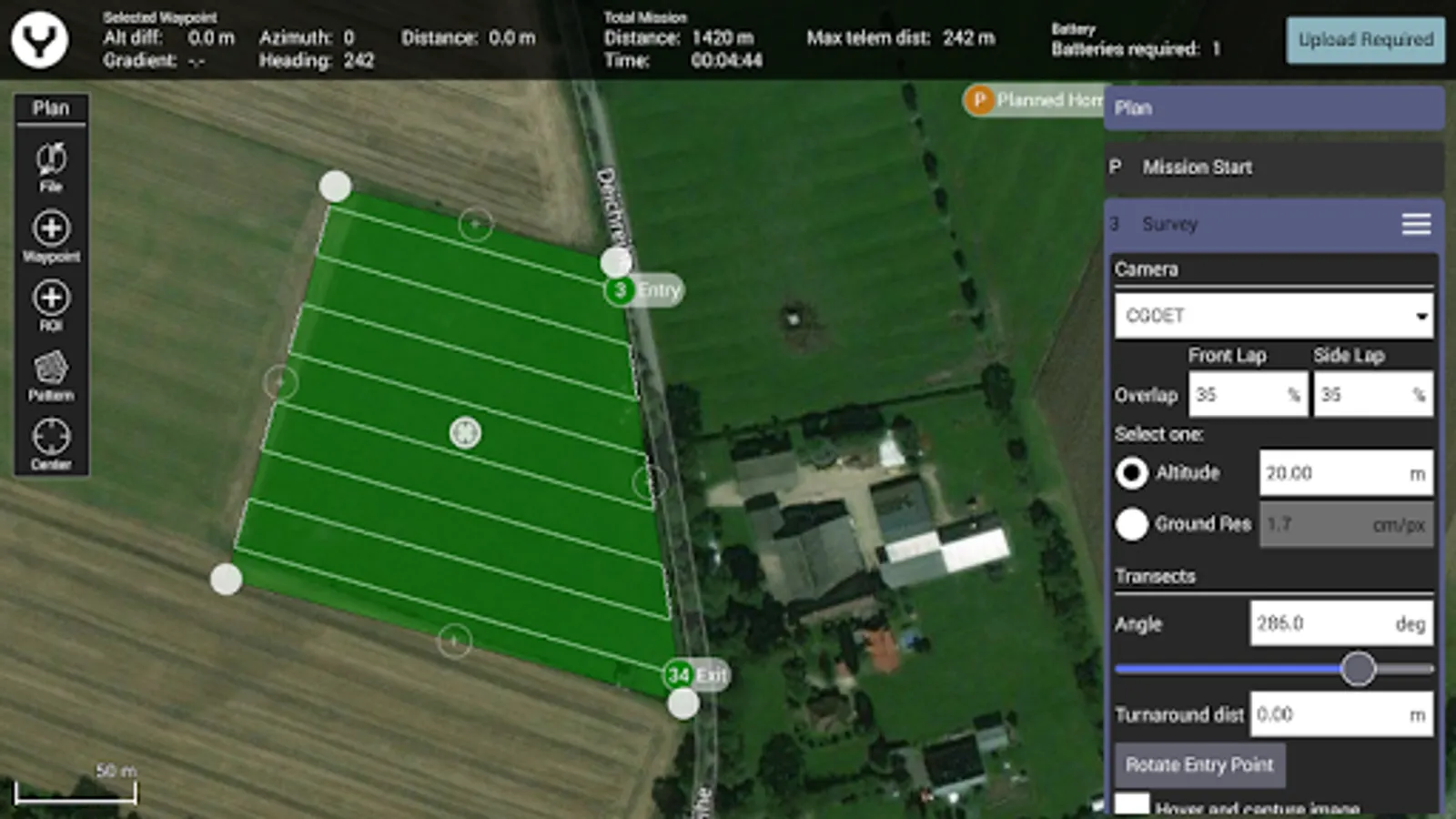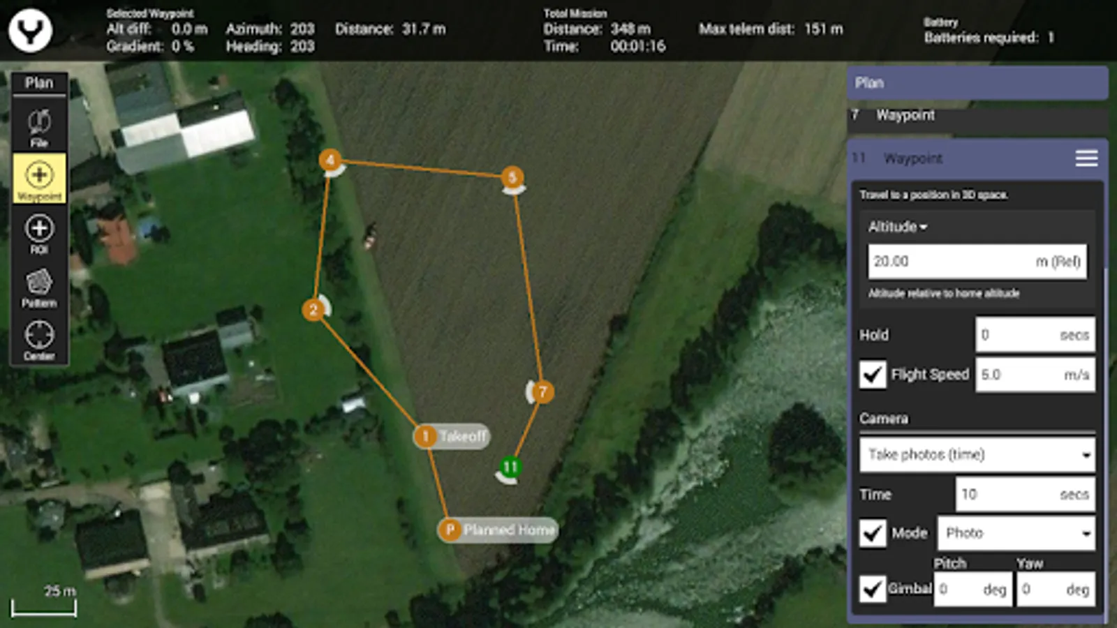 1. Mission Planning (Waypoint/Survey) – Auto-generate flight paths and camera controls based on custom parameters
