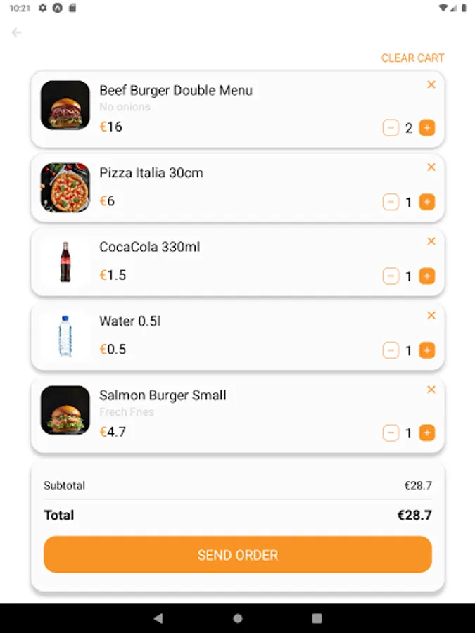 This is an application used to display the menu and to manage orders in a restaurant or bar. Users can create their orders, create a cart, and complete the order. The waiter is able to see the tables and manage the status of the order.