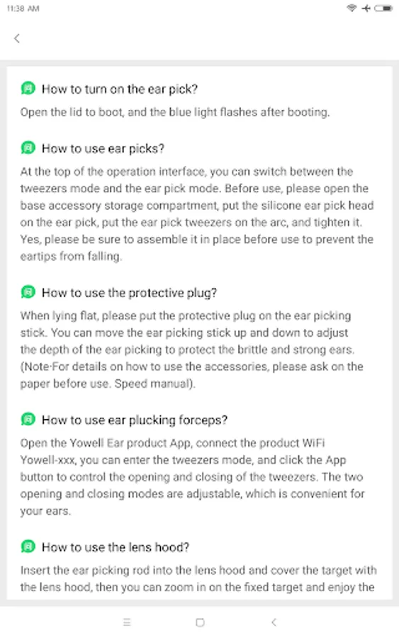 Yowell Camera is an app that can display the pictures collected by the hardware in real time on the mobile device. Combined with the hardware accelerometer, it can view the user's ear canal in real time, which is convenient for the user to clean and care the headset.