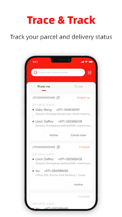 - Easily check of E-commerce items, business documents, large parcels, return and exchange delivery status.