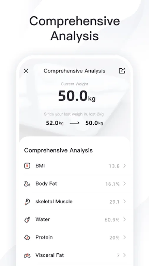 -Data trend: Based on your weight and body fat, a data curve is automatically generated, you can see the changes in your body at a glance.