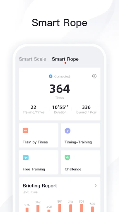 【Smart Rope】 It can record automatically the number and duration of rope skipping and generate a chart at the same time to present your exercise results more intuitively.