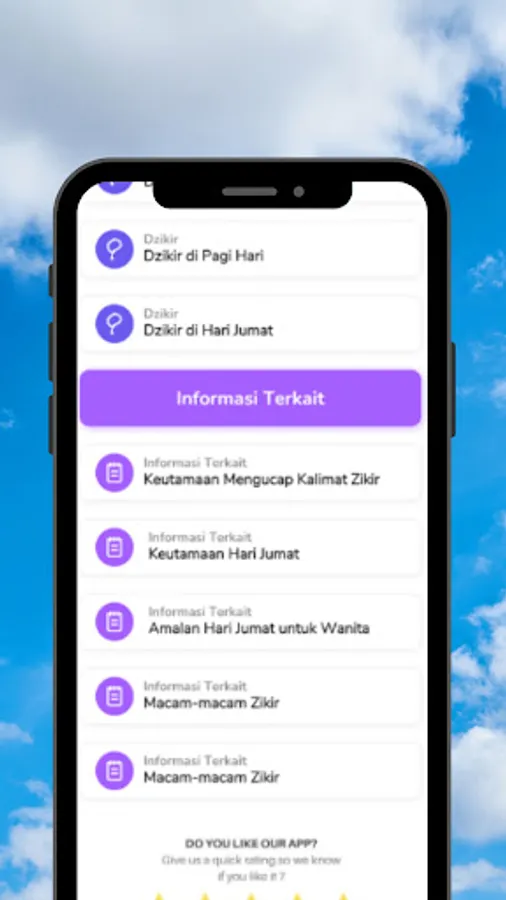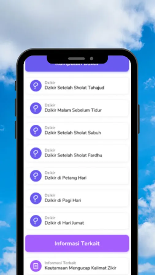 Daily dhikr feature which contains morning dhikr, evening dhikr, and after prayer dhikr.