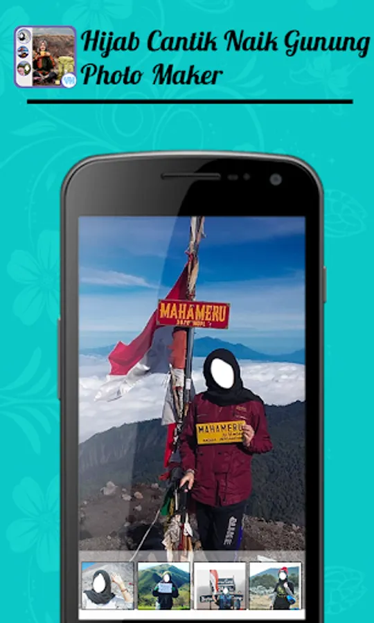 Hijab Beautiful app Ride Mount Photo Editor is a hijaber Photo editor app that is Climbing mountain,