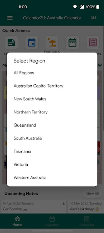 - Regions include ACT, NSW, NT, QLD, SA, TAS, VIC, WA