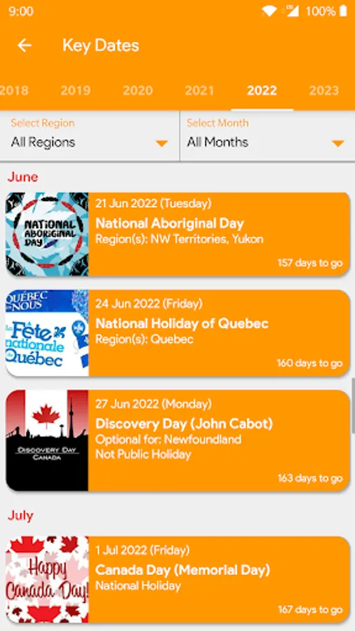 - Canada Regional Public Holiday & Festivals