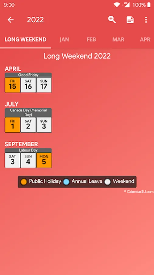 Canada holiday calendar