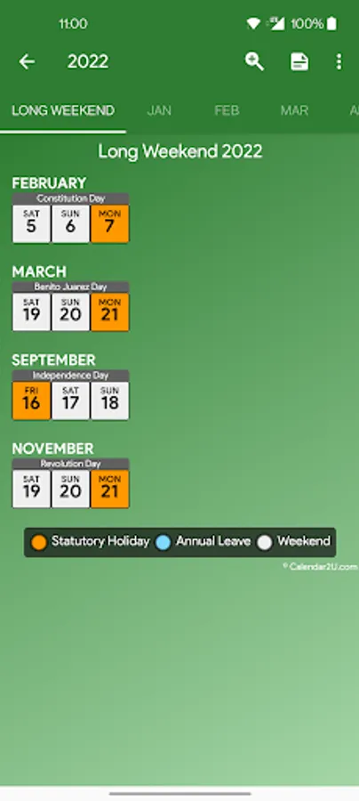 Calendar2U: Mexico Calendar - holiday calendar