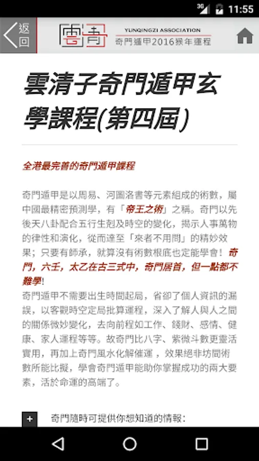 奇門課程:坊間難尋具傳承力的奇門遁甲課程,但可從本程式中找到,令大家有機會成位一位真正奇門大師!
