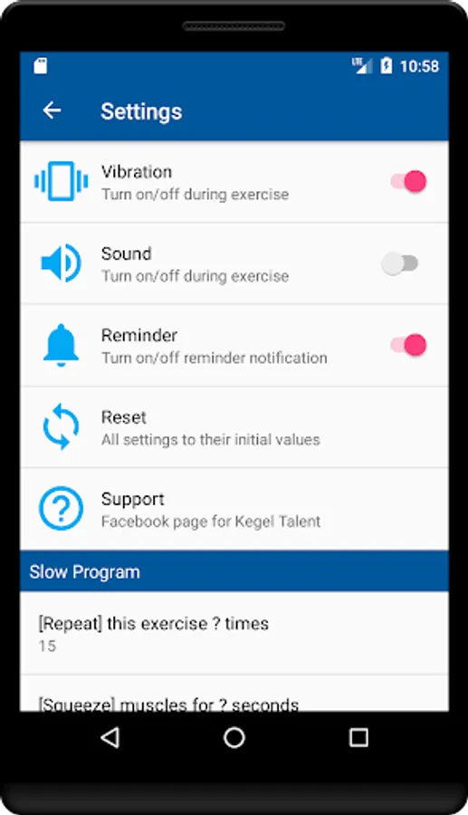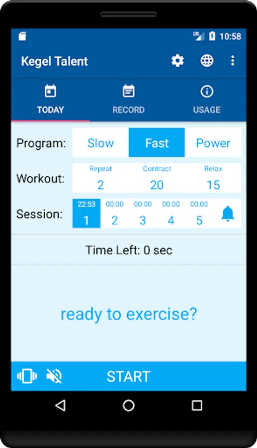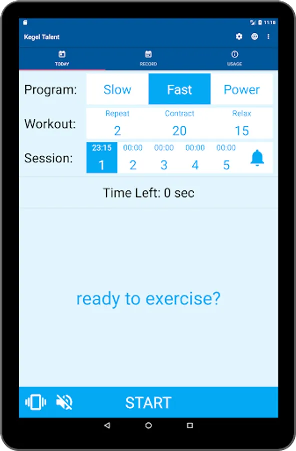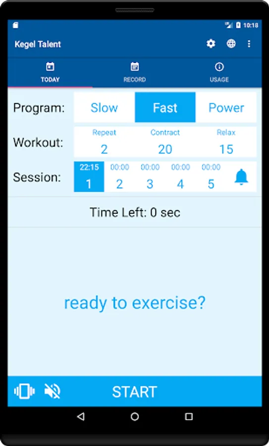 Kegel Talent APP is designed with default exercises for beginners. Once you've acquired adequate strength in your muscles, you can setup the APP to take bigger exercises.