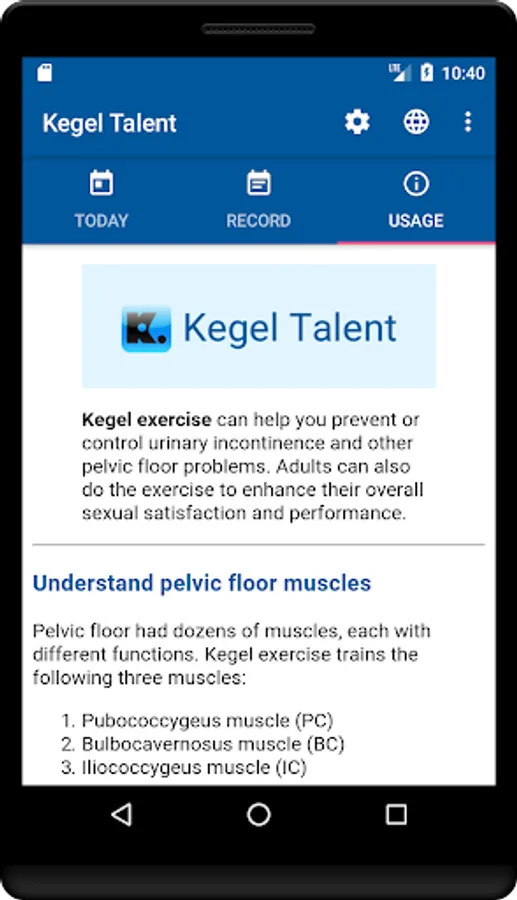 * This APP is suitable for both male and female users. Follow the introduction on the APP while doing Kegel exercise.