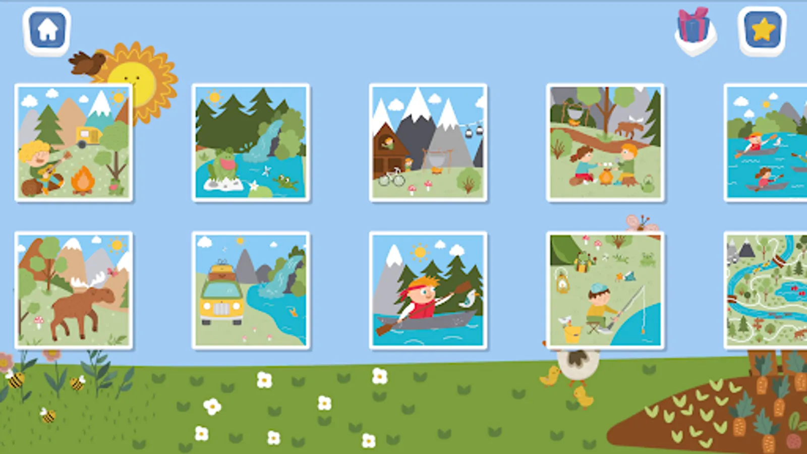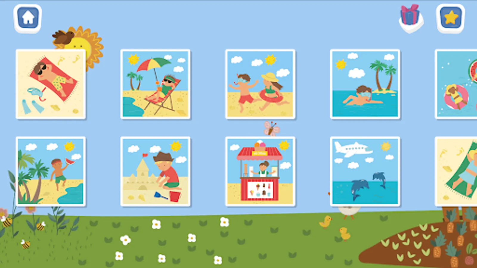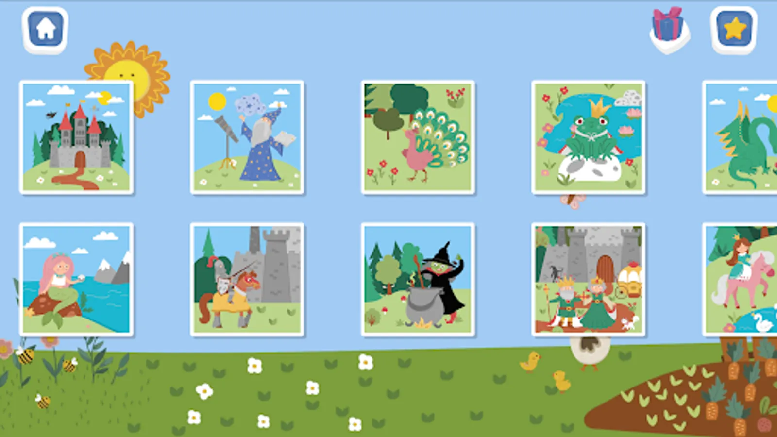 Our game for kids features a selection of jigsaw puzzles designed for both boys and girls. The interface is simple, intuitive, colorful, and easy to use so that both toddlers and preschoolers can have fun solving the different puzzles. At the end of each puzzle, a reward or sticker is obtained to motivate the little ones.