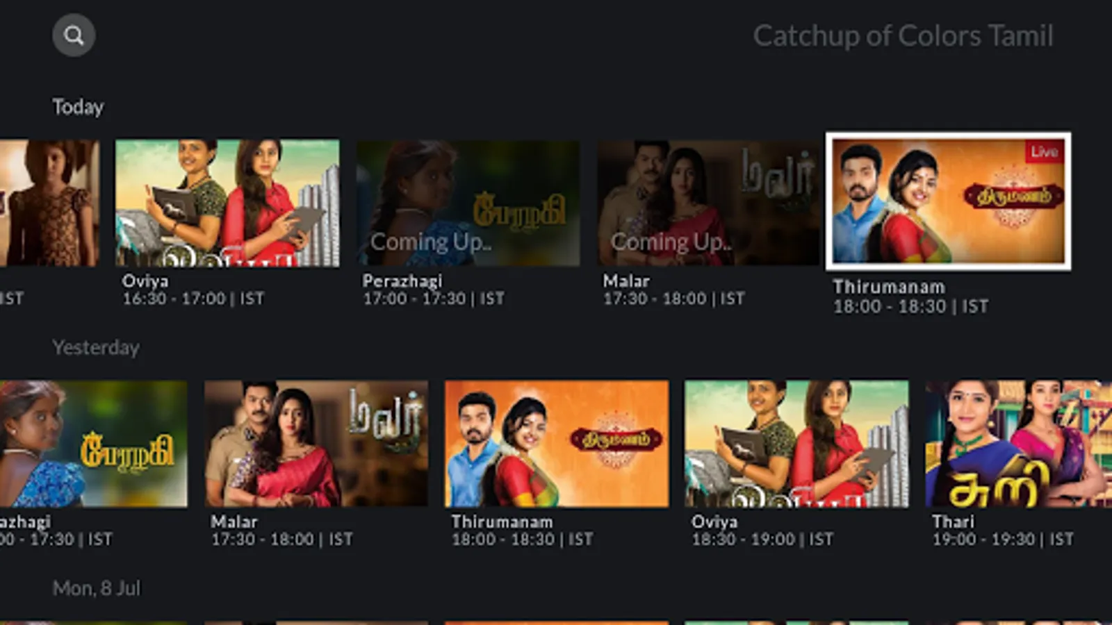 Tu Maza Sangati, 10 Minute 50 Khabar, Aahuthi, Aamchya Gharat Soonbai Jorat, Aparajita, Apna Uttarakhand, Appa, Ashta Chamma, Astro Uncle, ATTARILLU, Aung Baung Chaung, Bada Ghara Bada Gumara Katha, Bade Chotes Playlist, Balika Vadhu, Bang Bang, Bhabhi's Playlist, Bhule Jeyonaa Please, Blue Dragon, Breakless Band, Byanjonborno, Byomkesh, Chakravarti Samrat Ashok, Chinnari PelliKuturu, CID, Comedy Darbar, Comedy Nights with Kapil, Crime Patrol, Dil SeLive, Durga, Dustak, EeTharam Illalu, Ek Cup Cha, Great Music Gurukul..and more
